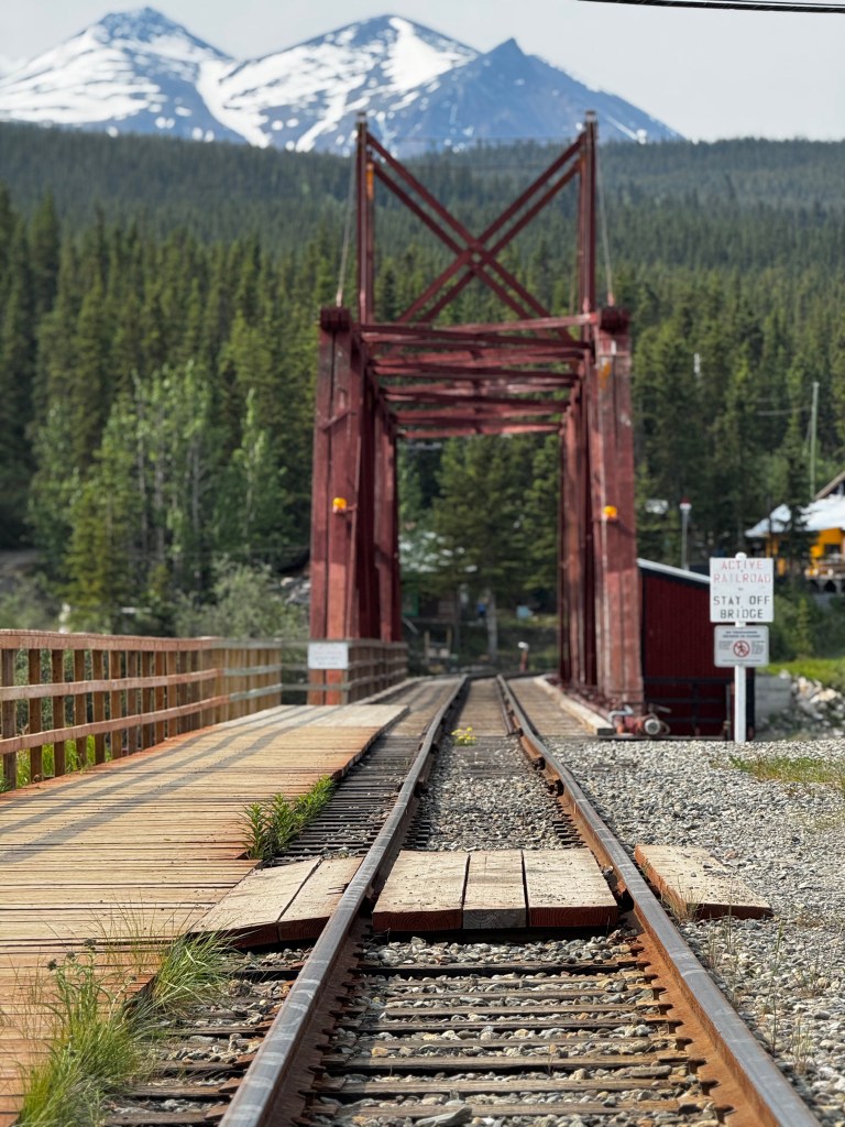 À Carcross, le temps semble avancer au rythme lent des rails et du vent. Sur le pont qui enjambe l’eau calme, juste en face du pont de la voie ferrée, les pêcheurs s’installent, presque immobiles, guettant un mouvement discret à la surface.